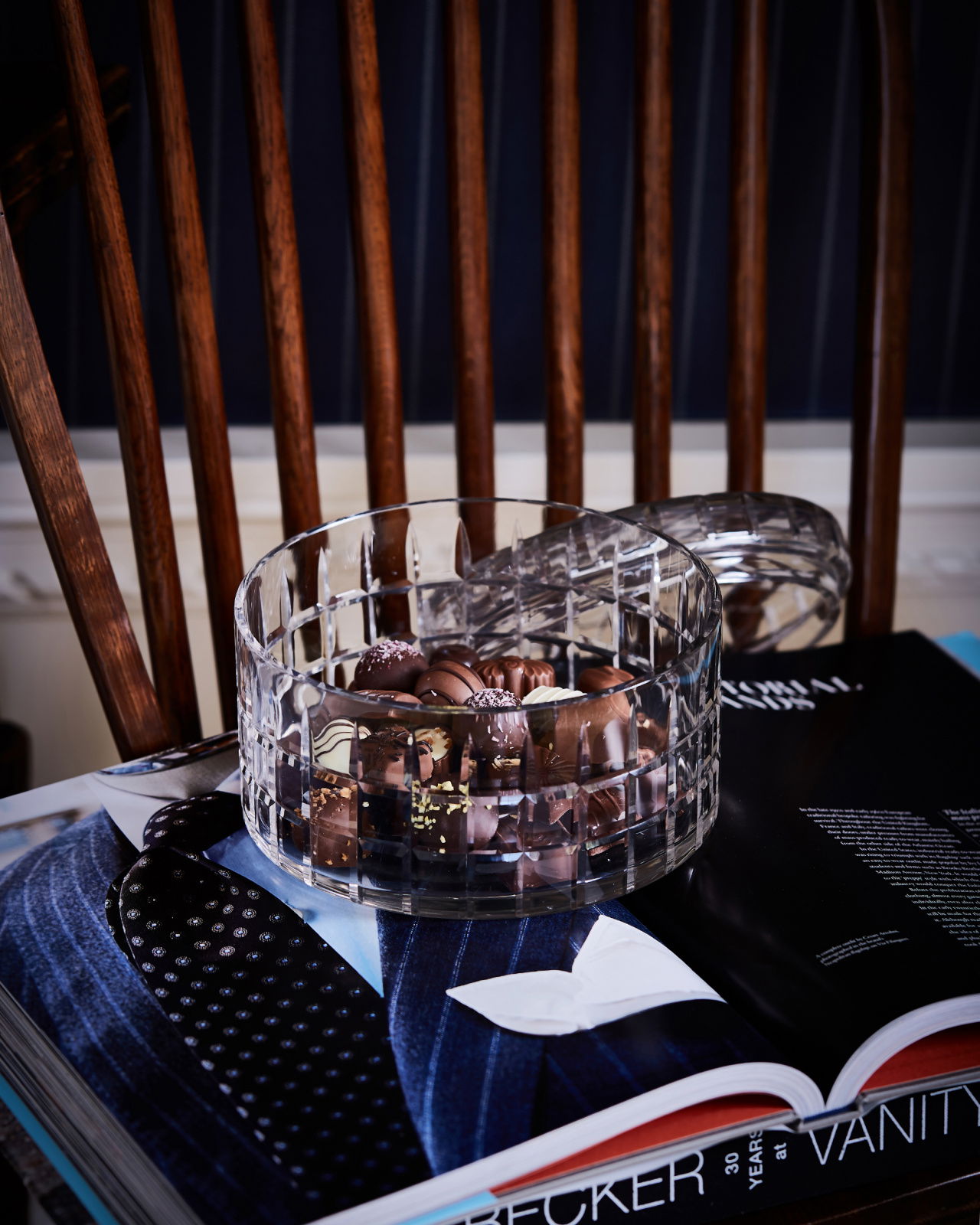 Een prachtig bakje van kristalglas dat ook als vaas gebruikt kan worden.